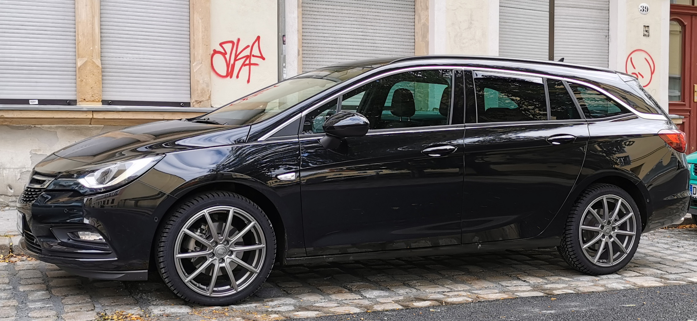 Erstes Foto mit den neuen Winterreifen und v.a. -felgen. Eine der wenigen mit ABE und ECE. Und gefallen mir echt gut. Hab ich so auch noch nicht an einem anderen Astra gesehen.