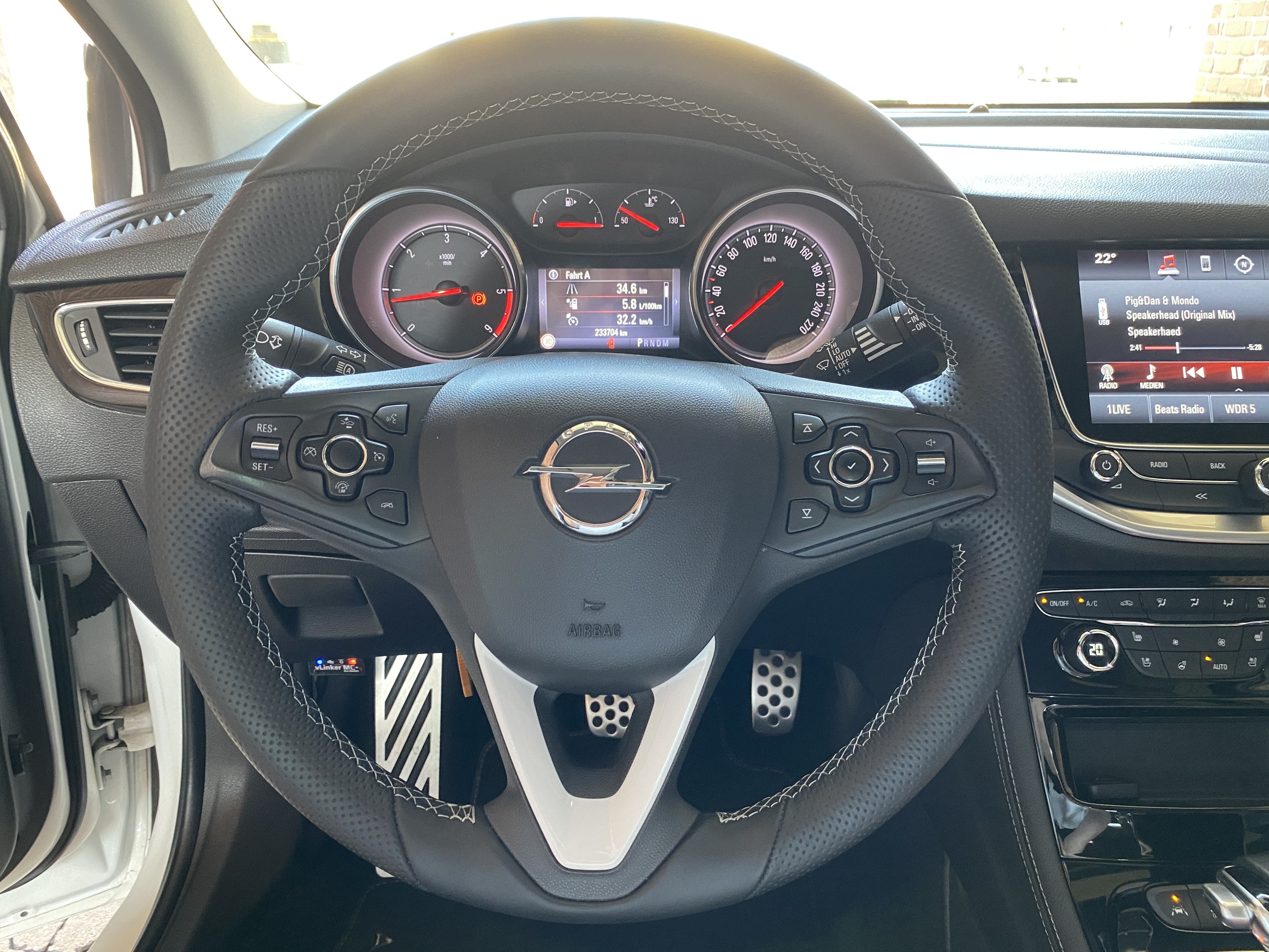 Lenkrad neu bezogen und Spange in weiss, OPC Sportpedale